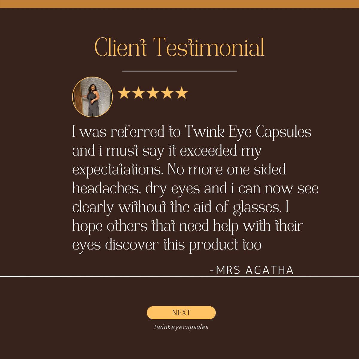 If you have eye challenges, Twink Eye Capsules is 100% worth the trial, you will be amazed at how fast your vision gets better within a couple of days.
